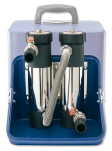 This is the Fernox TF-1 filter, which is a combination of a Magnaclean and Sentinel filter. It has a powerful magnet, as well as a filter strainer, so you have the best of both worlds.
